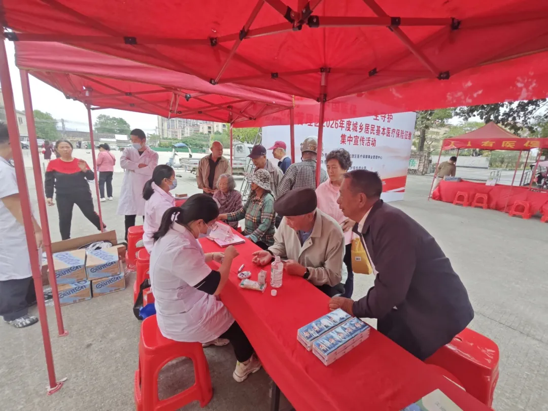 活动中,医护人员免费为居民开展健康咨询、血压、血糖测量,医保部门工作人员通过发放宣传手册、一对一讲解等方式,向居民讲解2026年度城乡居民医保参保缴费、“粤医保”绑定家庭共济关系操作流程、基本医疗保险参保长效机制政策和医疗保障待遇等惠民政策,将“医保宣传 健康服务”有机结合;活动现场还设置了“医保缴费区”,居民现场缴纳城乡医保费可获得雨伞、手机支架等精美礼品,活动现场参与人数超200人次,进一步提升了居民的参保意识和政策知晓率,营造了积极参保的良好氛围。
