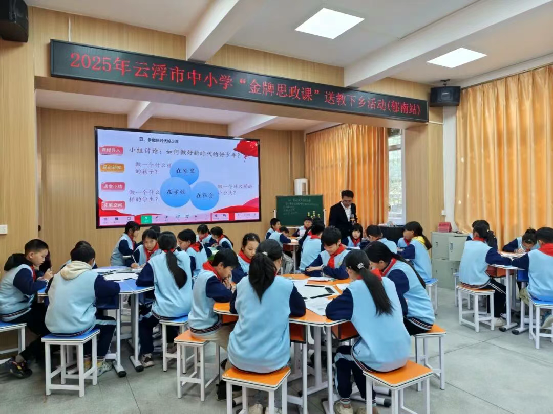 为深化中小学思政课一体化建设,推动优质思政教育资源下沉乡村校园,12月19日,云浮市中小学“金牌思政课”送教下乡(郁南站)活动在郁南县宋桂镇中心小学顺利开展。活动采用“线下现场展示 线上同步直播”的创新模式,吸引全市小学思政课教师参与观摩学习。