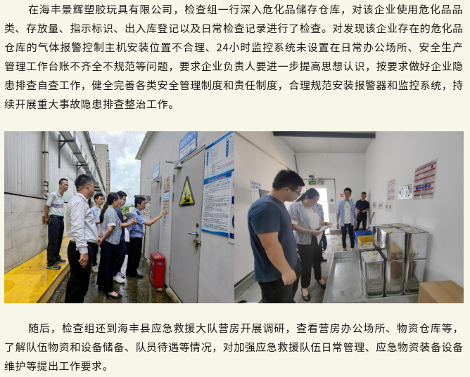 市应急管理局主要领导到海丰县督导检查重大事故隐患排查整治工作-ag尊龙凯时