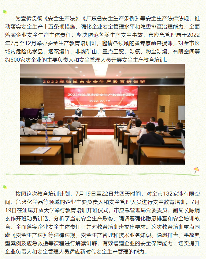 强化主体责任落实 防范生产安全事故┃汕尾市安全生产教育培训班开班-ag尊龙凯时
