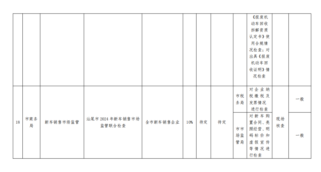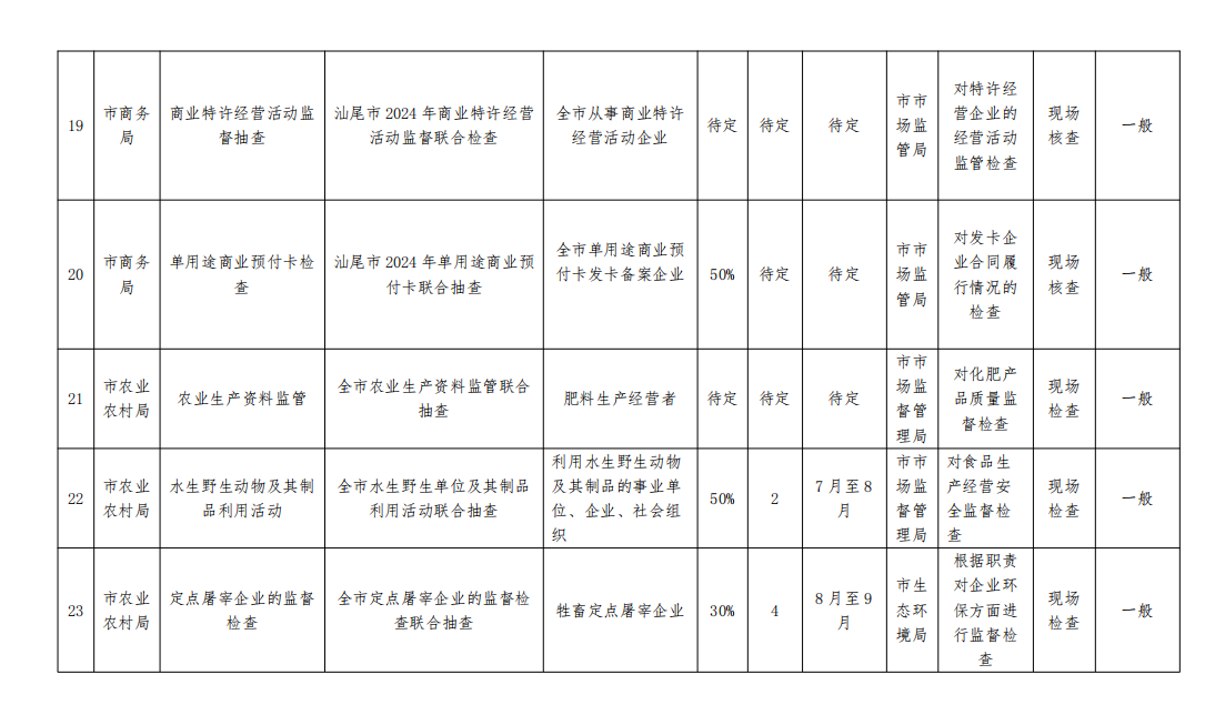 2024 年度汕尾市跨部门 “双随机、一公开” 联合抽查工作计划