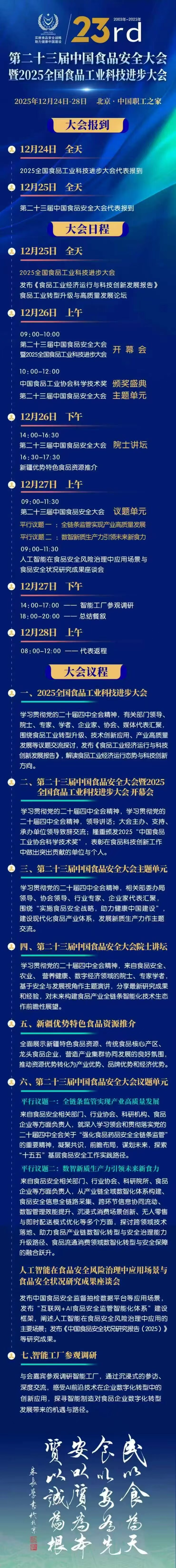 第二十三届中国食品安全大会暨2025全国食品工业科技进步大会12月在京召开-ag尊龙凯时