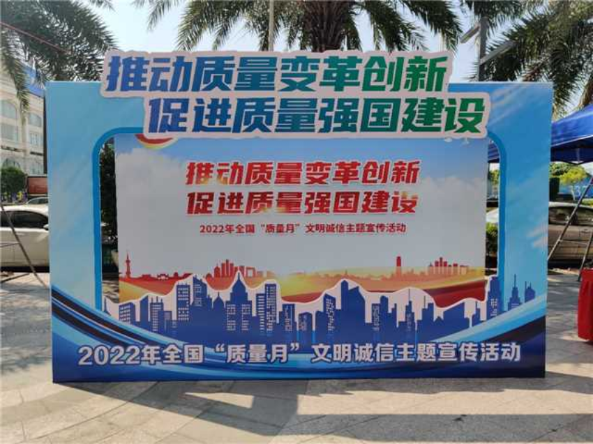 为深入实施质量强市战略,大力开展质量提升行动,根据市场监管总局等21个部门关于开展2022年全国“质量月”活动的通知要求,9月16日,我市聚焦今年质量月主题“推动质量变革创新,促进质量强国建设”,在城区明珠广场举办2022年全国“质量月”文明诚信主题宣传活动。