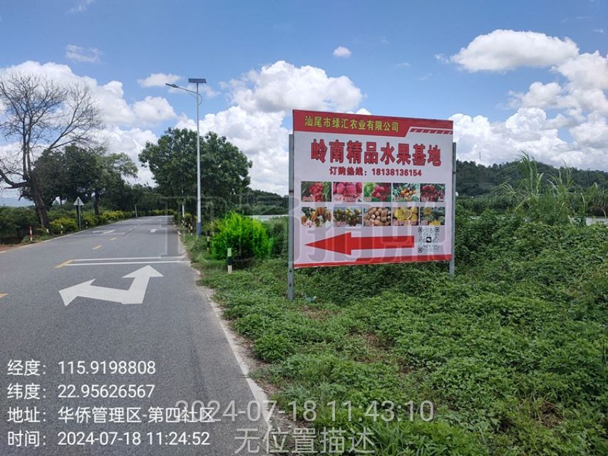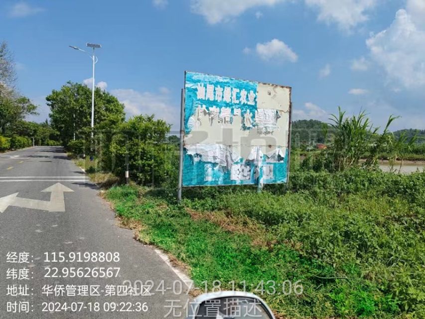 2024年7月18日,经网格员巡查发现,第四社区侨南路往南塘方向路边的广告牌年久风化,造成广告脱落,影响市容市貌,结合“百千万工程”绿美行动,网格员立即上报社区领导,同时联系该果园基地管理人员,辅助管理人员将广告海报更换新的。