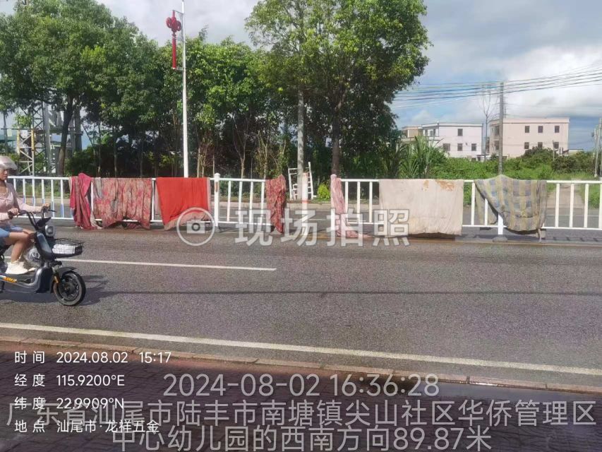 2024年8月2日,巡查发现,居民占用侨南路公路护栏晾晒被褥,影响通行车辆视野,具有交通隐患,还影响市容市貌。网格员立即上报社区领导,同时通过走访询问,找到责任居民,立即要求他将被褥收取,并耐心沟通教育,避免类似情况发生。