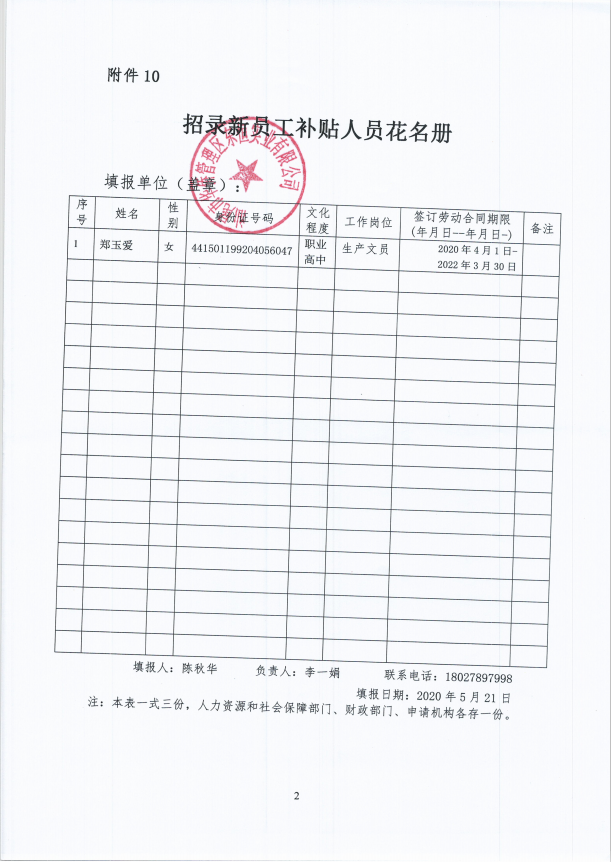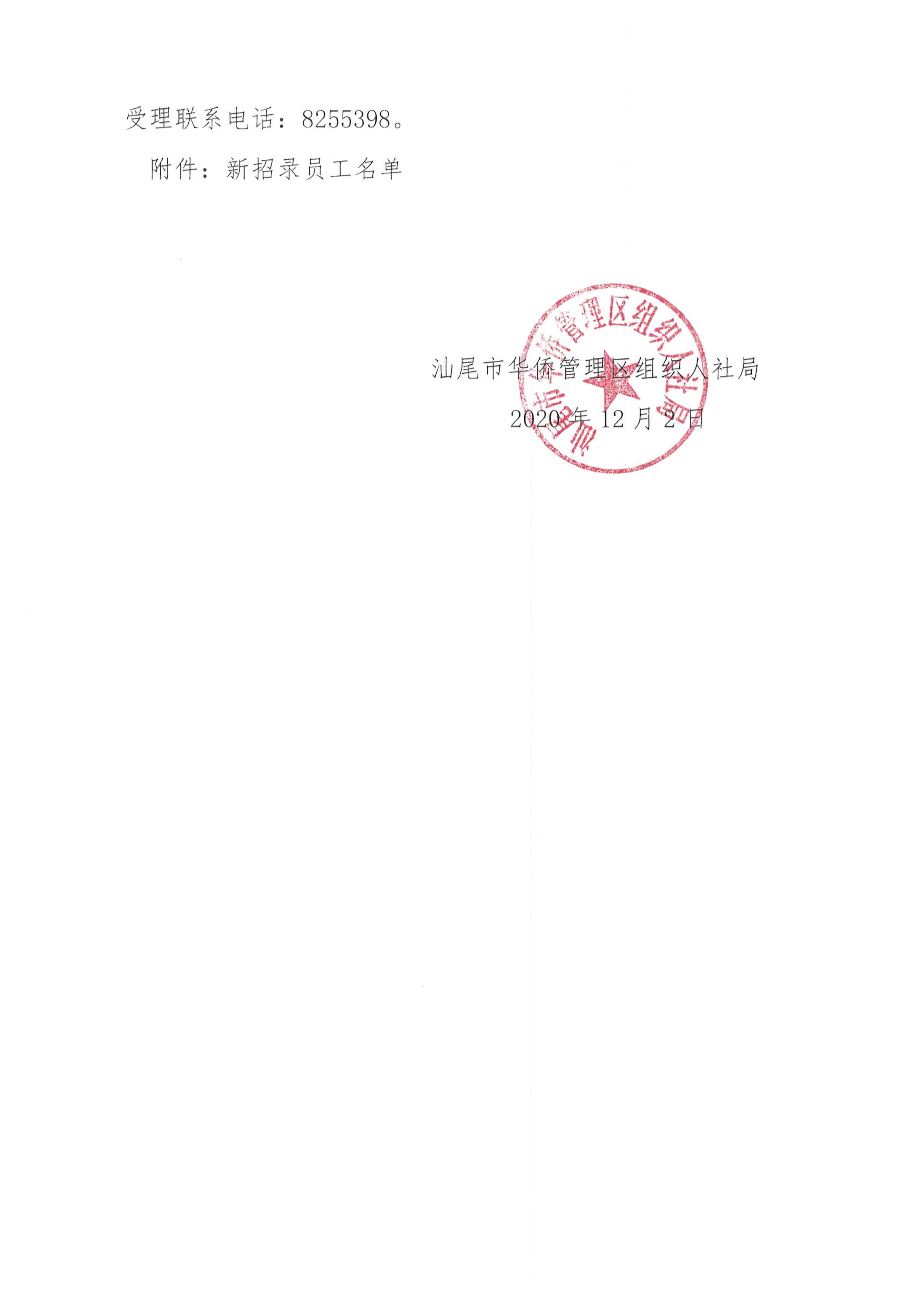 关于汕尾市华侨管理区东恒实业有限公司申请企业招录新员工补贴的公示