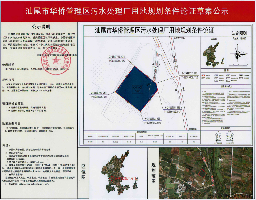 汕尾市华侨管理区污水处理厂用地规划条件论证草案公示