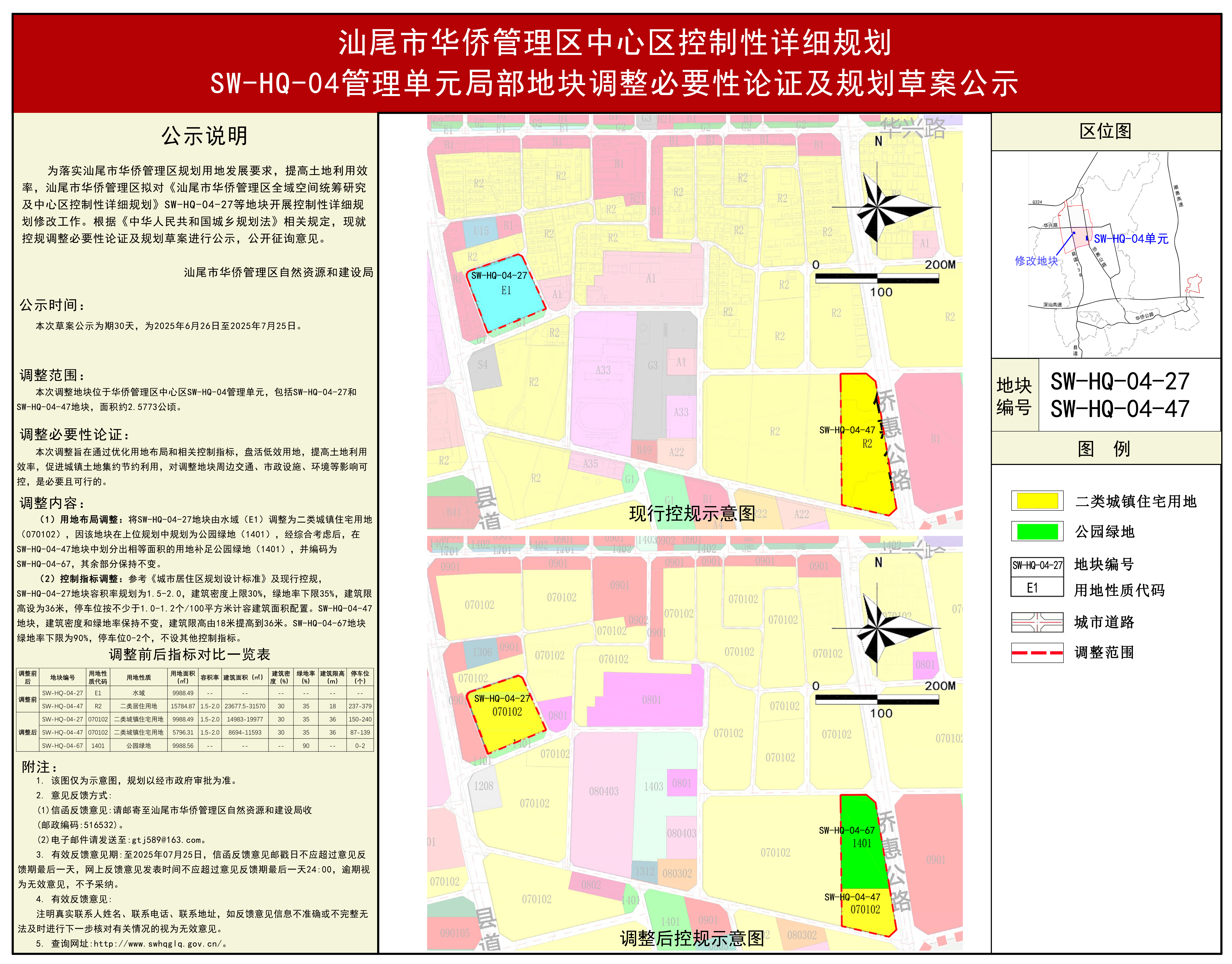 汕尾市华侨管理区中心区控制性详细规划sw-hq-04管理单元局部地块调整必要性论证及规划草案公示