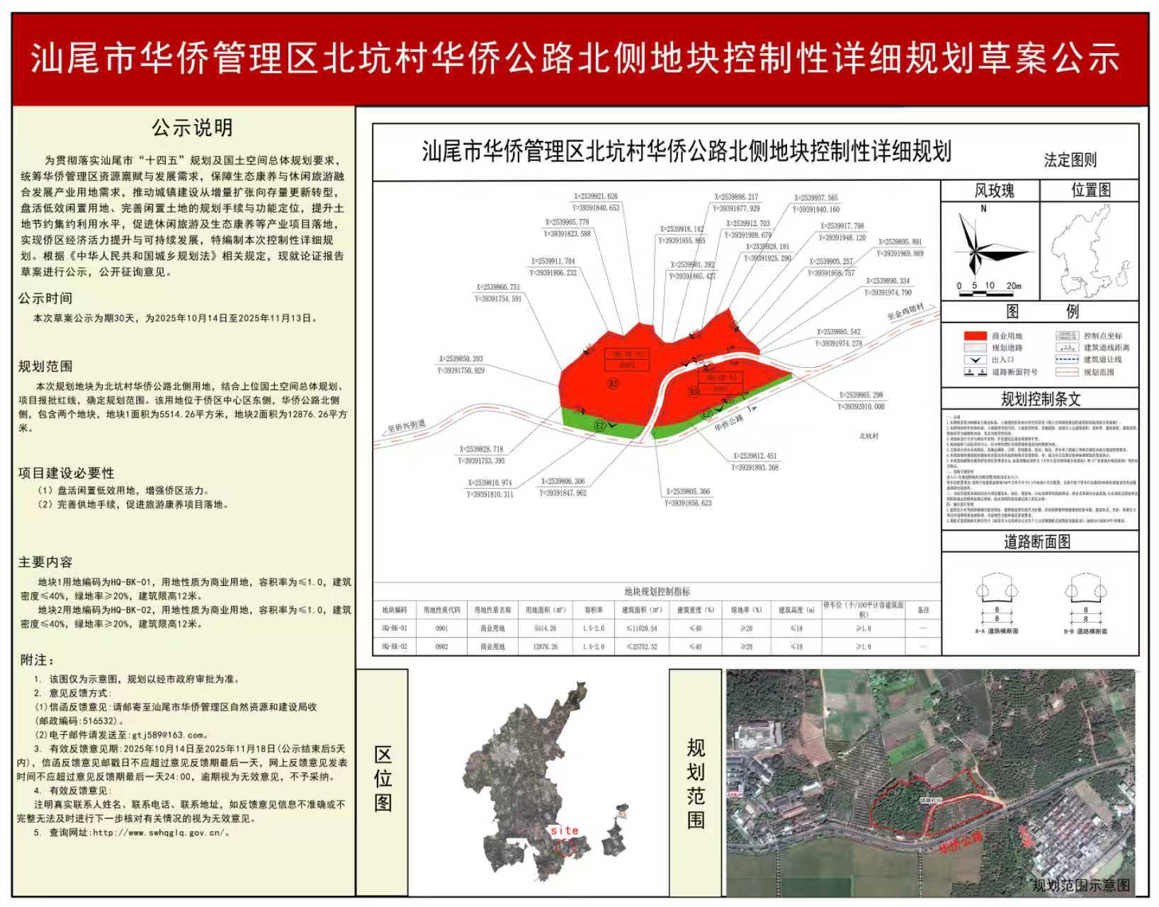 汕尾市华侨管理区北坑村华侨公路北侧地块控制性详细规划草案公示